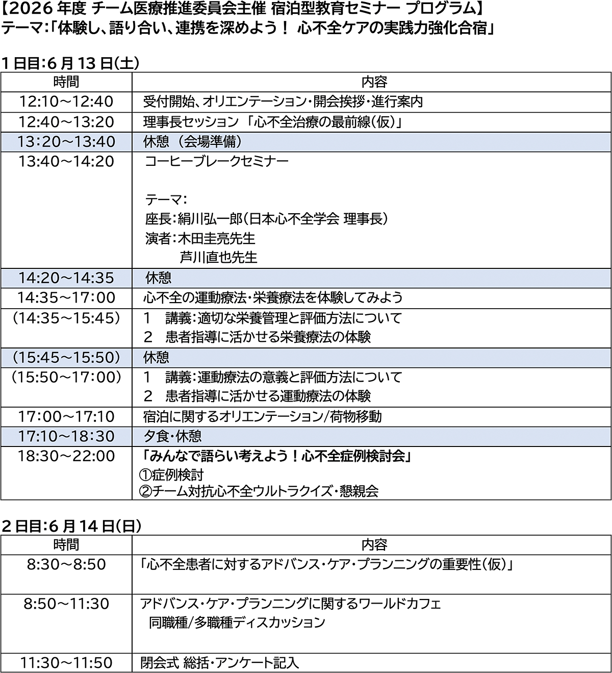 2026年6月開催チーム医療推進委員会宿泊型教育セミナー